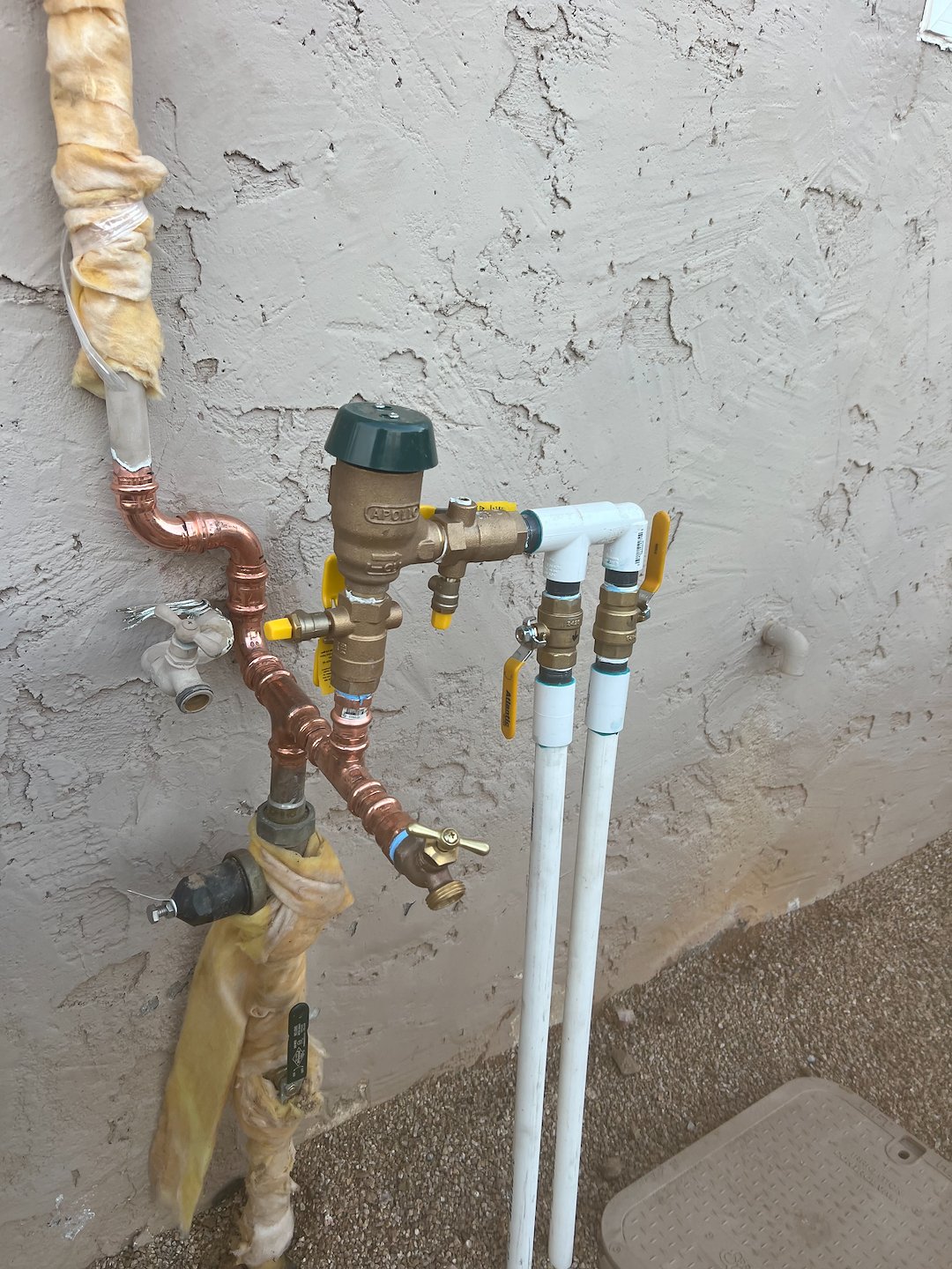 This drip irrigation installation in Desert Hills reflects a practical approach to landscape watering. With the new vacuum breaker, ball valves, and Irritrol valves in place, the system provides controlled, slow deep watering that reduces waste and promotes deeper root growth for the planted areas. If adjustments or routine checks are needed, the system was installed to allow straightforward access and service.